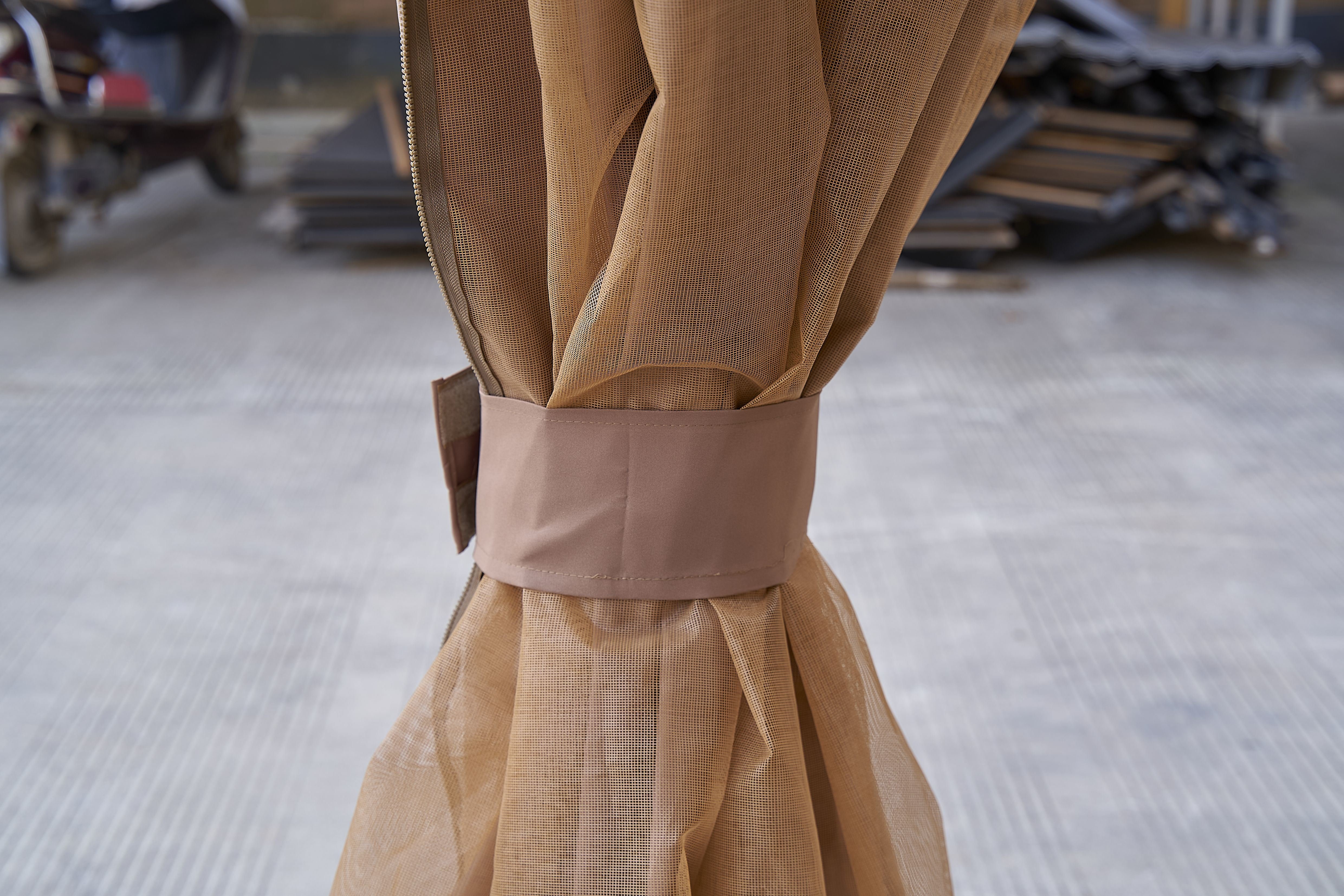 4.Double-tiered roof with metal net to circulate air and block leaves and mosquitoes.